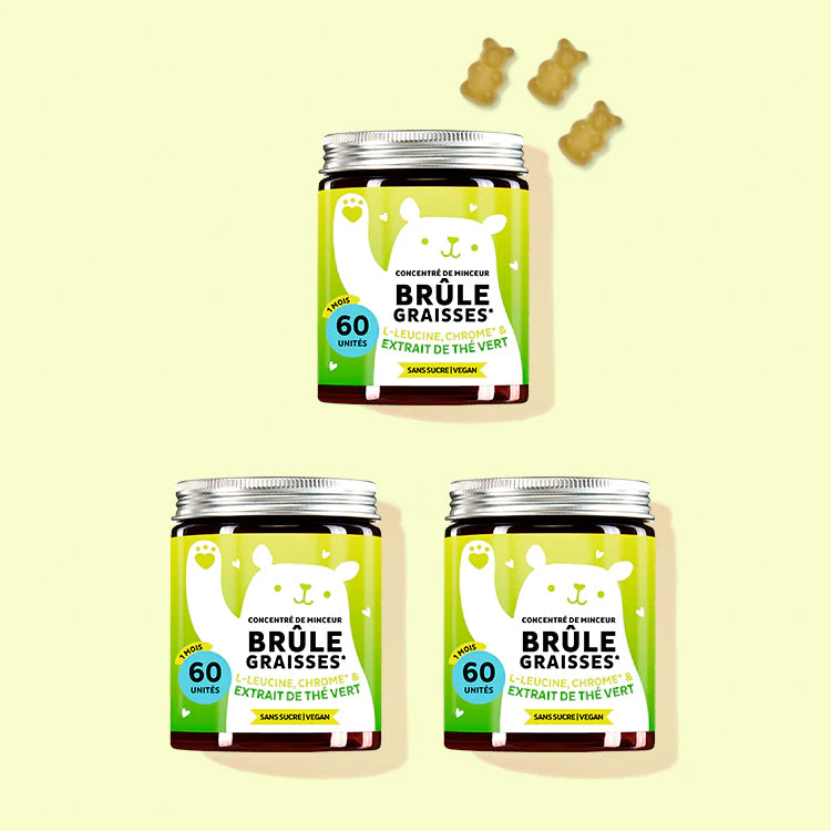 Boostez naturellement votre métabolisme avec "Concentré de minceur - brûle graisses". Nos gummies Concentré de minceur - brûle graisses, vous aident à éliminer les graisses, tout en maintenant un taux de sucre sanguin normal grâce à une association efficace de thé vert, chrome, biotine et zinc.