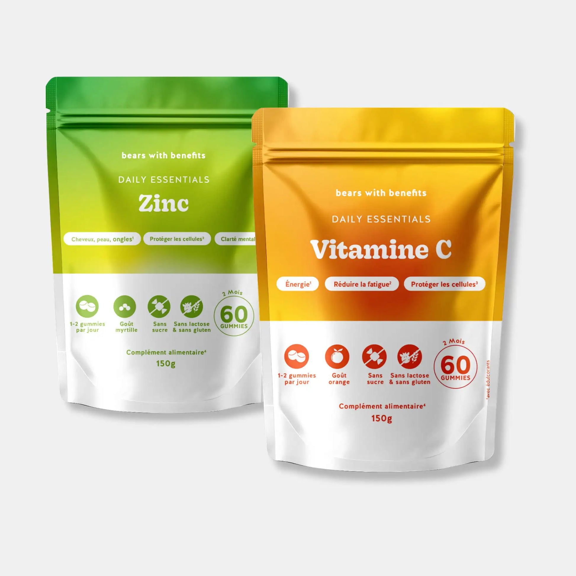 La vitamine C et le zinc agissent en synergie pour soutenir le système immunitaire, réduire la fatigue et contribuer à la santé de la peau, des cheveux et des ongles. Une combinaison idéale pour se sentir au mieux chaque jour.